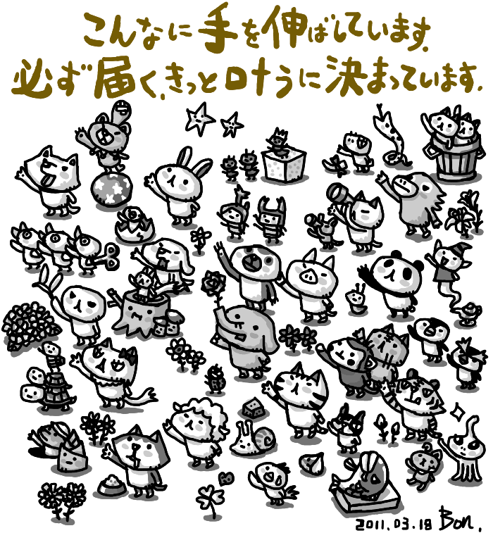 笑顔の絵を描いて 元気づけようとしてる漫画家さんがいたり。