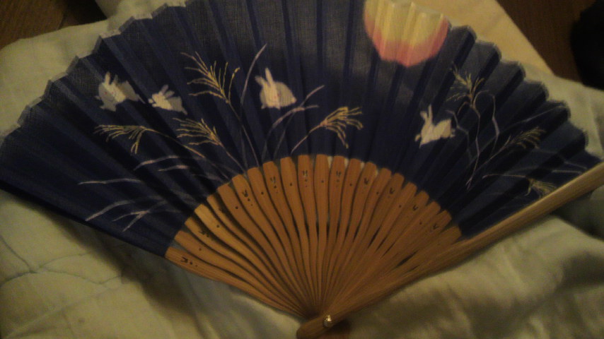 うさぎが 飛んでる 扇子。